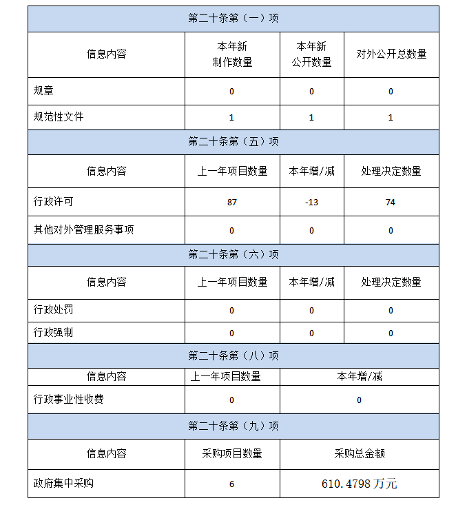 ?。ㄈ┩貙挵l布渠道。不斷加大政府信息公開宣傳力度,引導公眾正確行使知情權,加大與公眾的信息溝通,全面應用各方宣傳資源,不斷提高政府信息公開工作知曉率。一是充分依托新區門戶網站統一集中發布優勢,對經發局(統計局)機關簡介、規劃信息、統計信息、預算決算、政務服務、重大項目等方面信息,按照公開是原則、不公開是例外的要求,全面公開各類信息70余條。二是依托一體化在線政務服務平臺,建立了網站、“政民通”APP、微信公眾號和小程序同源發布、多端公開的運行機制,對“放管服”改革政策文件、辦件結果、事項清單、辦理流程及要件等方面信息進行全方位、多維度宣傳,確保政府信息公開的標準化、規范化、透明化。2020年發布各類政府信息10300余條。三是通過信用中國(蘭州新區)網站,對“雙公示”、政策文件、信用動態、信用承諾、信用典型案例等方面信息及時更新,大力宣傳誠信正能量、弘揚主旋律,營造了知信用信守信的良好氛圍,積極推動全社會共同參與,為新區經濟社會發展提供有力道德支撐和信用體系保障。2020年發布各類信用信息4700余條。四是借助各級主流媒體力量,在CCTV-13央視新聞頻道、中國改革報、中國信用雜志、甘肅電視臺、人民網、新華網、中國甘肅網等平臺,對復工復產、疫情防控、“互聯網+政務服務”改革、減稅降費、“證照分離”改革、投資項目審批制度改革、壓縮企業開辦時間、優化企業注銷辦理流程、壓減行政許可、市場準入負面清單動態調整等方面信息進行多角度、深層次宣傳報道,進一步加強了政府信息公開時效性。2020年發布各類信息120余篇(條)。
