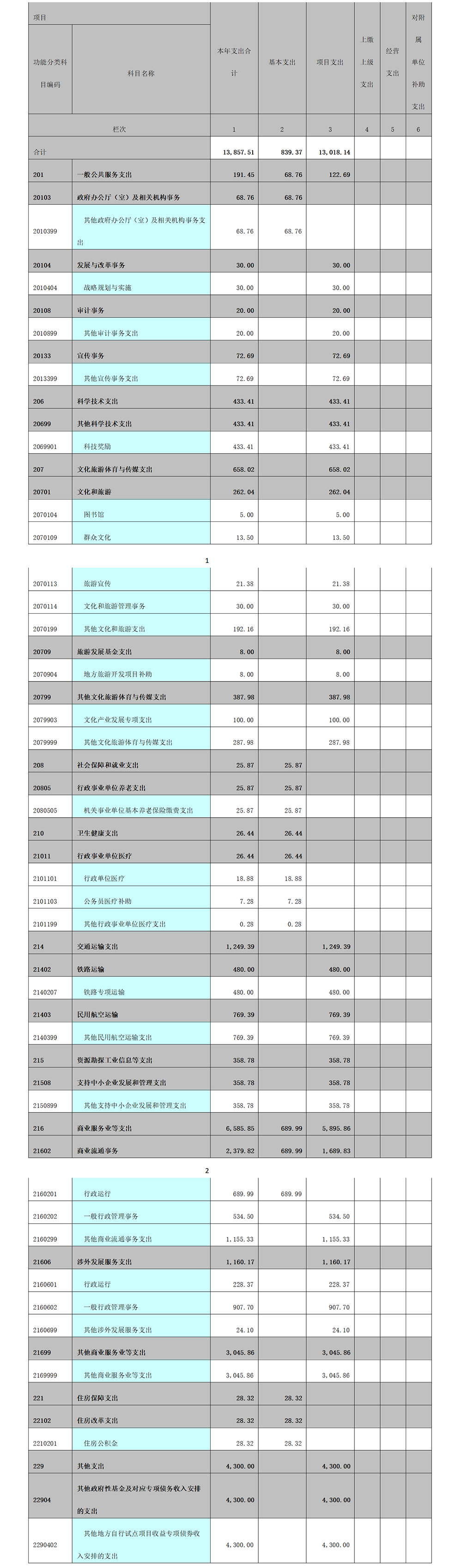 2020年度支出合計13,857.51萬元,其中:基本支出839.37萬元,占6.06%;項目支出13,018.14萬元,占93.94%。