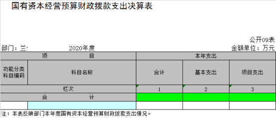 2020年度國有資本經營預算財政撥款本年支出0.00萬元。