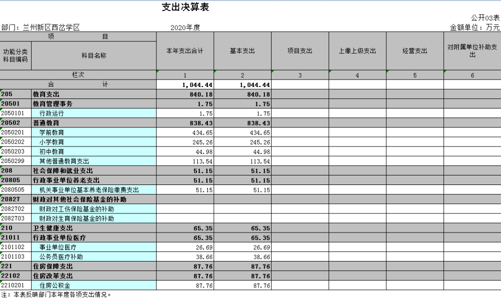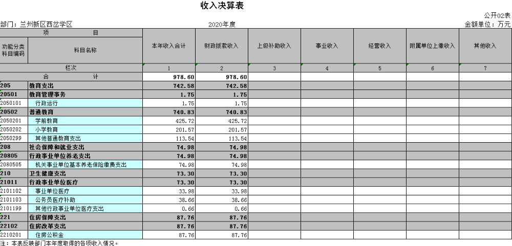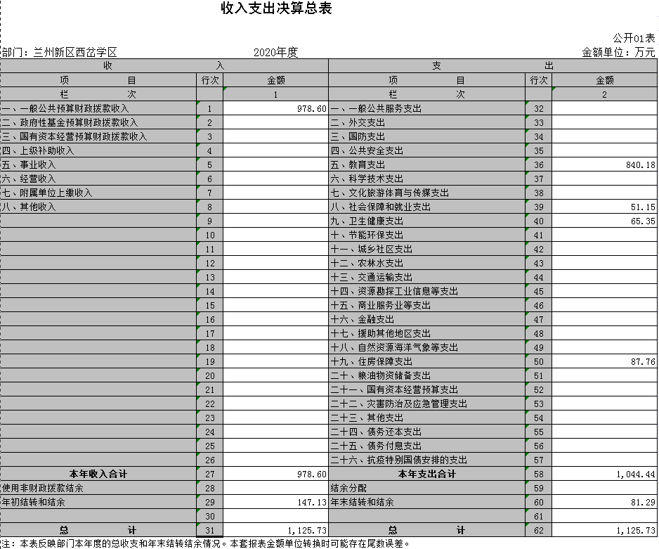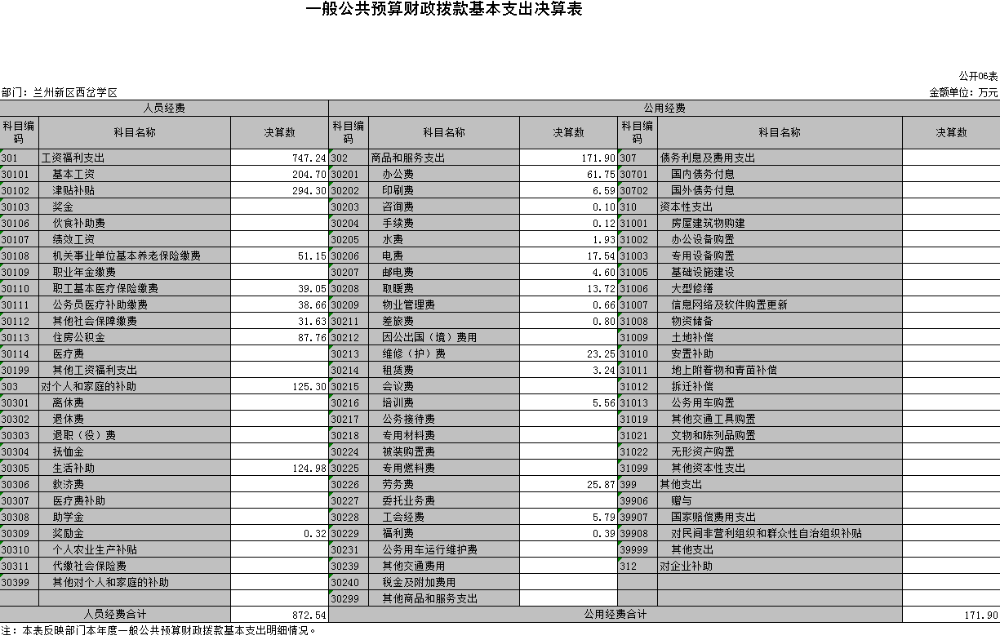 2020年度蘭州新區(qū)西岔學(xué)區(qū)部門決算
