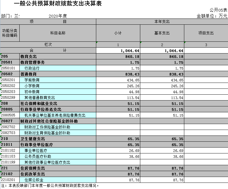 2020年決算總支出為1,044.44萬元,其中人員經(jīng)費(fèi)支出872.54萬元,占總支出比例94.4%;公用經(jīng)費(fèi)支出62.93萬元。占總支出比例5.6%.