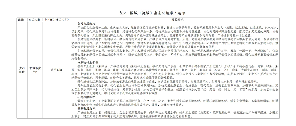 1.甘肅省生態環境總體準入清單、所在區域(流域)生態環境準入清單是蘭州新區生態環境準入清單的上位要求。蘭州新區生態環境準入清單首先應執行省級清單相關要求。蘭州新區生態環境準入清單執行過程中涉及與省級生態環境準入清單不一致的,按照法律效力高的、最新的、最嚴格的管控要求執行。