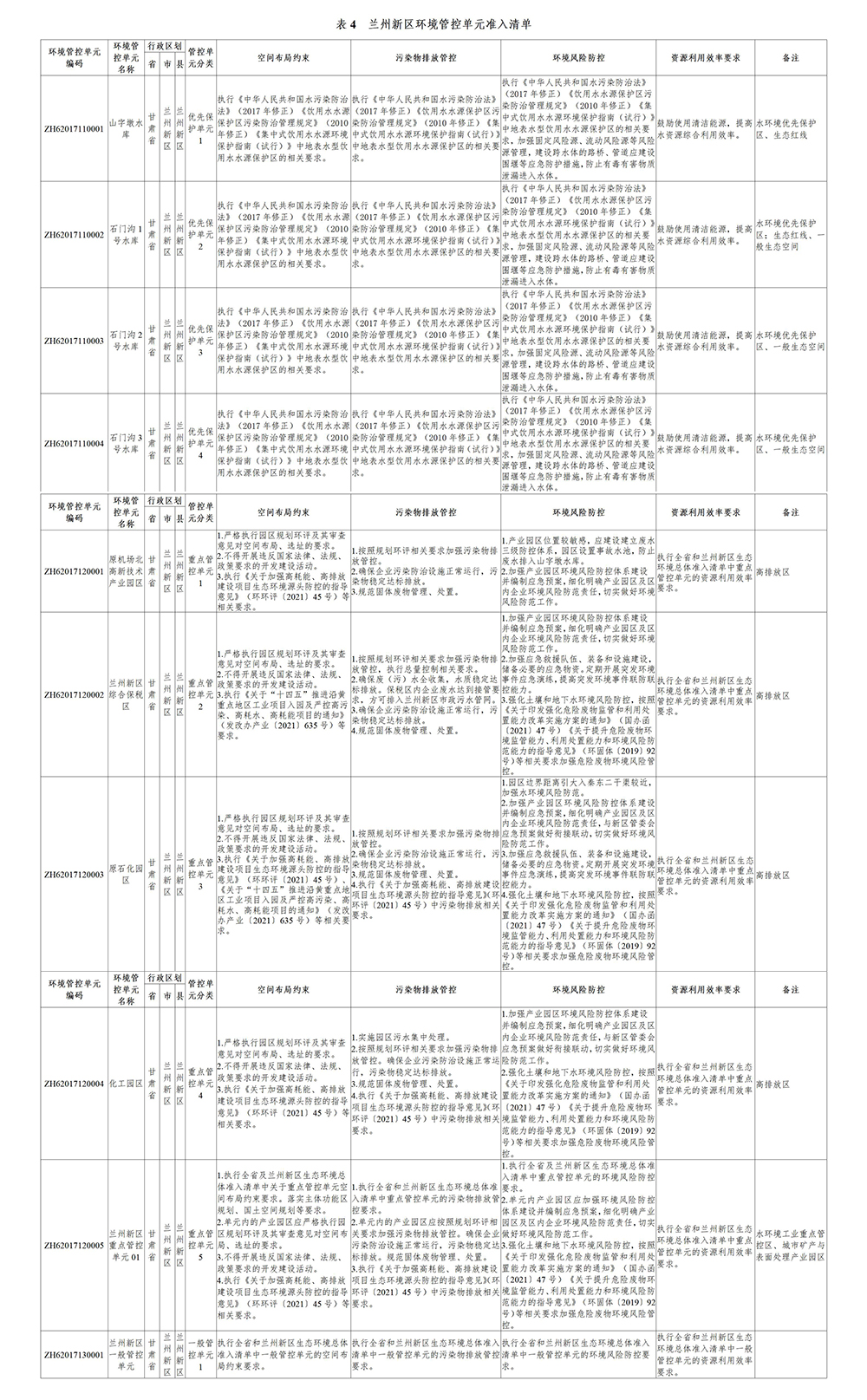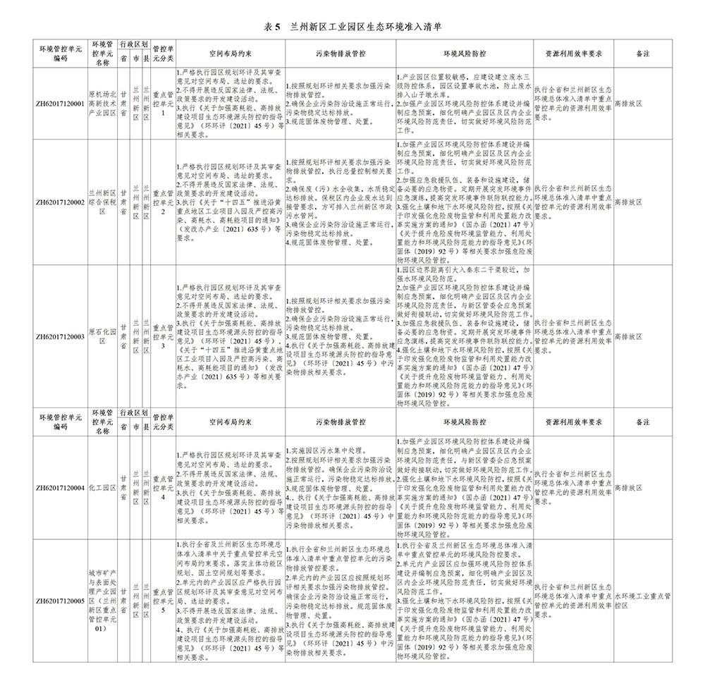 3.蘭州新區生態環境總體準入清單和10個環境管控單元準入清單在執行過程中,因國家或地方重大發展戰略、相關規劃、環境保護目標、生態紅線、自然保護地發生調整,應按調整后的最新要求執行,同時對其中相關的管控要求進行動態更新。
