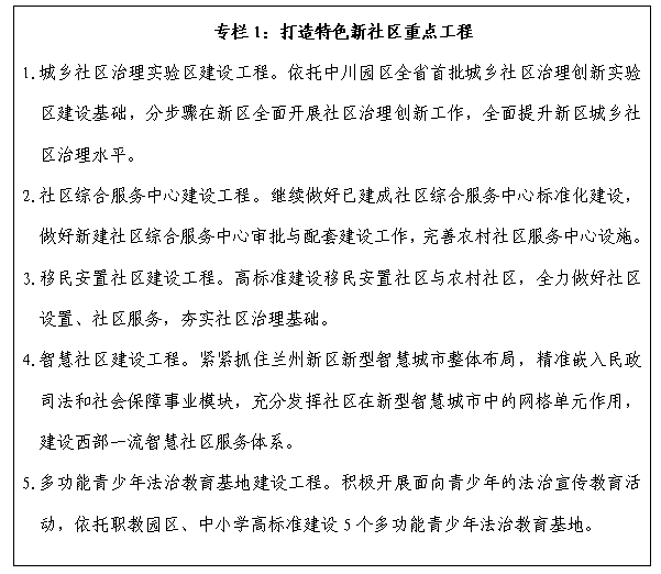 緊抓甘肅省城鄉社區治理創新實驗區建設機遇,在公共空間綜合利用、拆遷安置社區治理創新等領域,探索全省領先、全國具有影響力的實踐模式。以完善的社區服務帶動公共服務創新,促進社區帶動發展和集聚人口,促進農業轉移人口就地、就近城鎮化。繼續加強中心社區建設,著力提升中心社區服務和凝聚群眾功能。堅持重心下移,探索扁平化管理,構建更加高效的組織體系,進一步完善“新區管委會—園區管委會—鄉鎮(中心社區)—村(社區)”新管理模式,推進撤村并居,全面落實《蘭州新區推動中心社區直接辦理政務服務事項實施方案》,推動服務群眾事項向中心社區和社區服務站穩步過渡,打通服務群眾“最后一米”,著力增強群眾獲得感、幸福感和安全感。