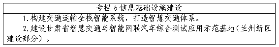 “十四五”期間,按照《甘肅省智慧交通建設工作方案》,重點推進智慧交通體系框架建設,實施智慧交通示范工程。