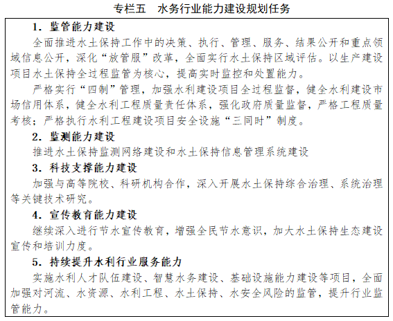 持續提升水利行業服務能力。按照黨中央關于全面深化改革的總體部署,積極踐行“水利行業強監管”,以健全水法制體制為基礎,通過實施水利人才隊伍建設、智慧水務建設、基礎設施能力建設等項目,全面加強對河流、水資源、水利工程、水土保持、水安全風險的監管,提升行業監管能力;通過整合現有防汛抗旱、水利建設、水資源管理、河湖保護、城鄉供水、農業灌溉、水土保持等各類水利數據,以信息技術與水務業務深度融合為基礎,加快水信息監測、水行政管理、便捷化服務和高效化決策能力建設,提升水行政執法能力和災害預測、預警及應急處置能力。