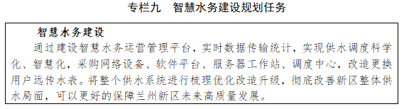 智慧水務建設工程投資0.62億元。包括蘭州新區智慧化水務工程、農村供水工程智能化改造。