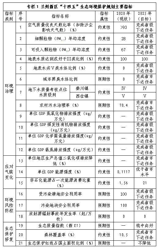 蘭州新區“十四五”環境保護與生態建設規劃