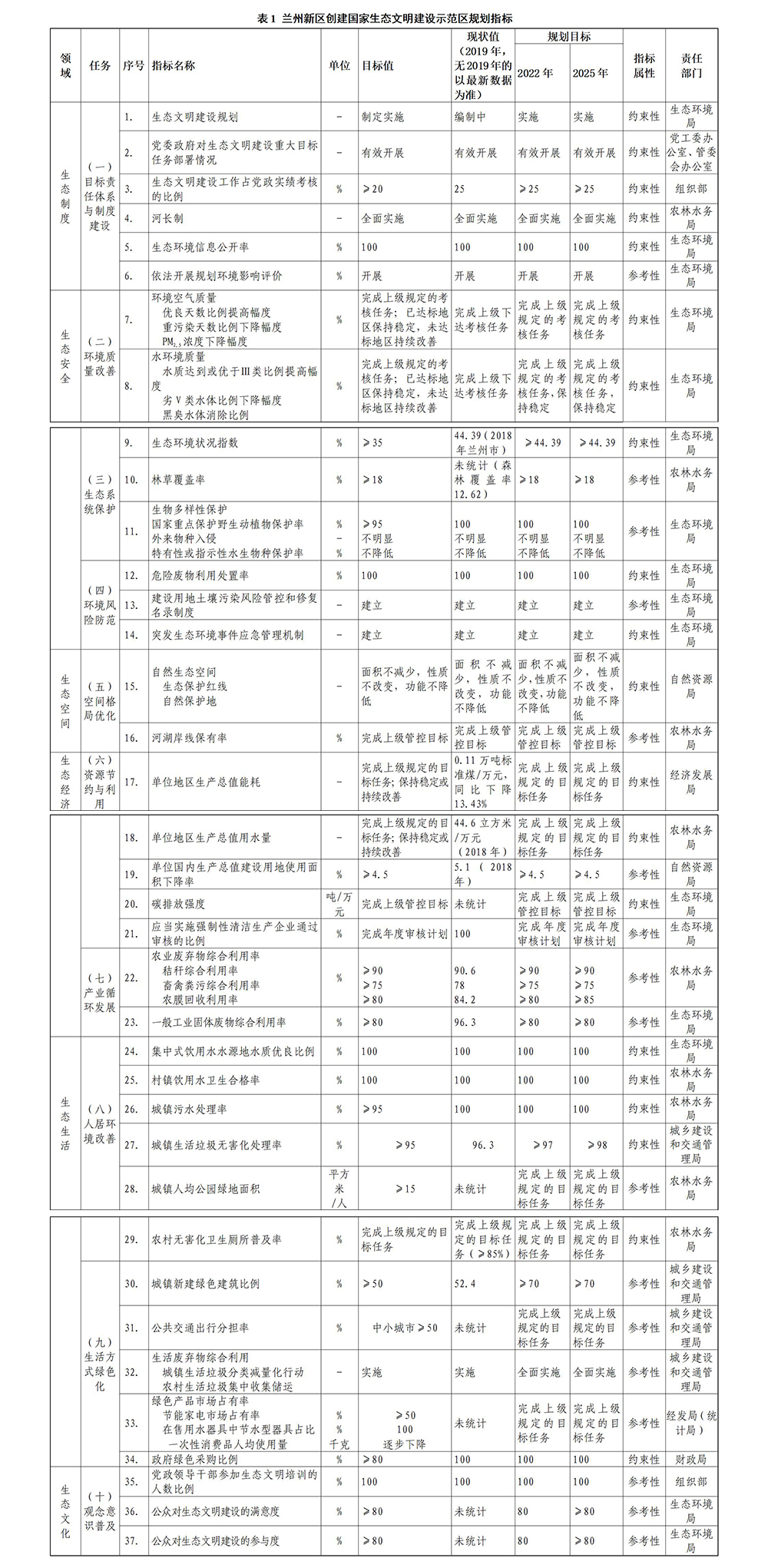《蘭州新區創建國家生態文明建設示范區規劃(2020-2025年)》的通知