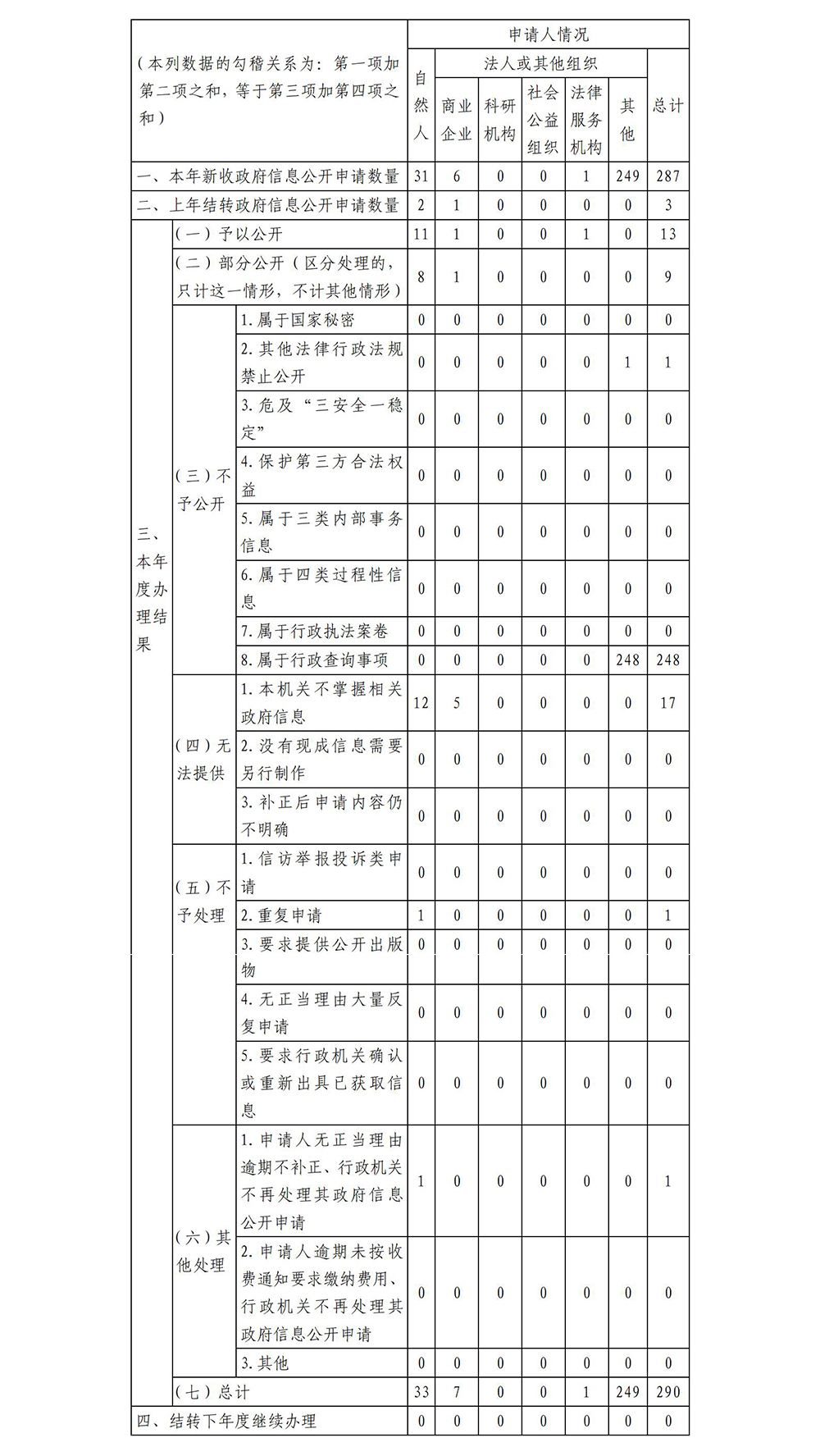 三、收到和處理政府信息公開申請情況