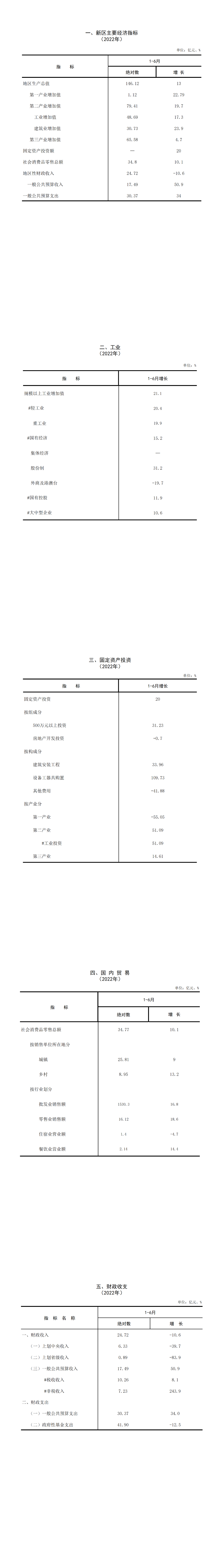 2022年上半年主要經(jīng)濟指標(biāo)數(shù)據(jù)