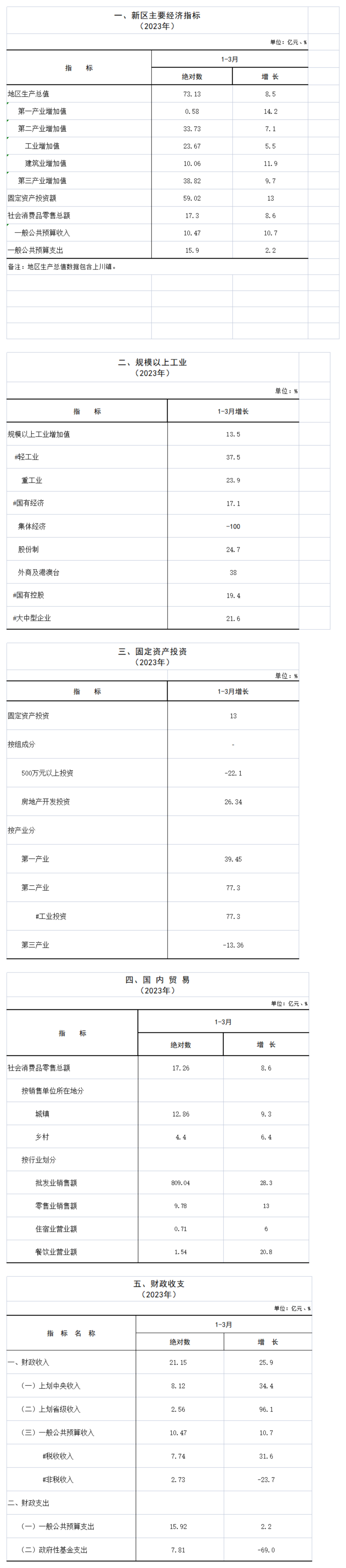 蘭州新區(qū)2023年一季度主要經(jīng)濟(jì)指標(biāo)數(shù)據(jù)