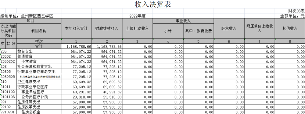 2022年我單位收入、支出都為116.88萬元, 2021年為1245.42萬元,2022年比上年減少了90.62%,因為2022年我單位管理職能轉變,將轄區內4所幼兒園全部劃轉入新區實驗幼兒園管理,教師及學生轉出,造成預算收支大副減少。