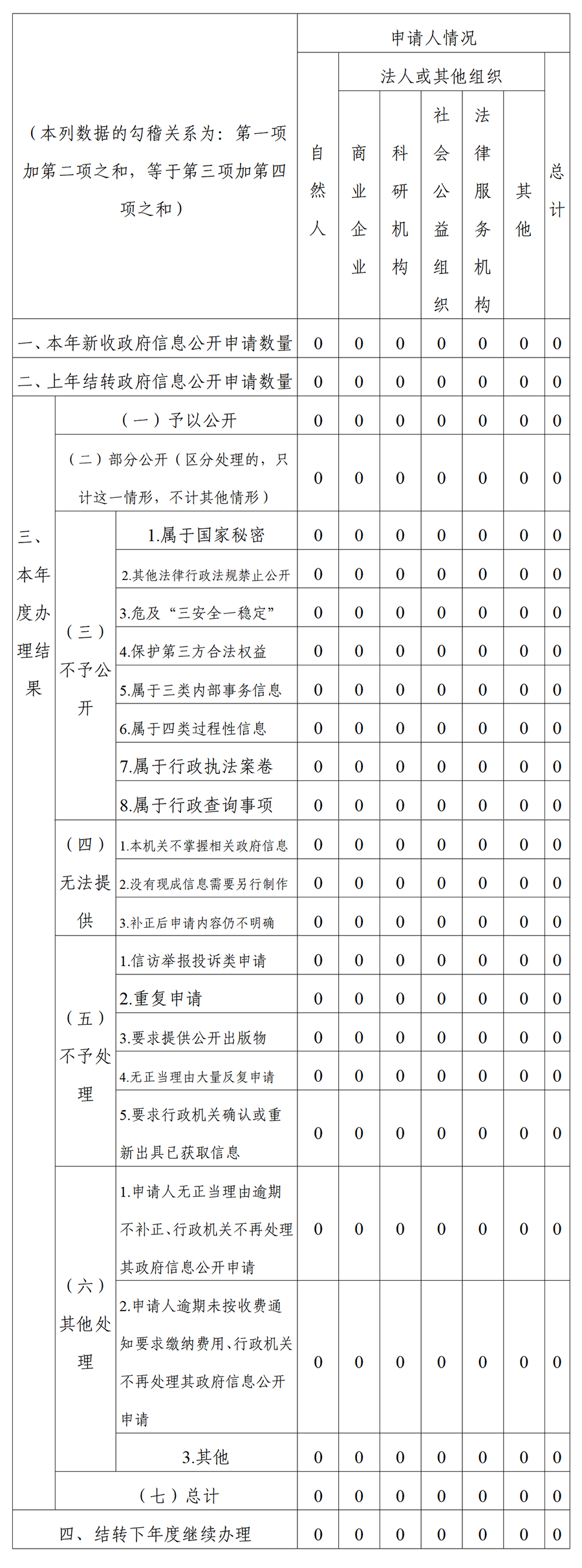 三、收到和處理政府信息公開申請情況