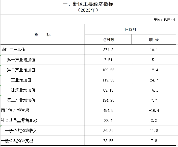蘭州新區(qū)2023年主要經(jīng)濟指標(biāo)數(shù)據(jù)