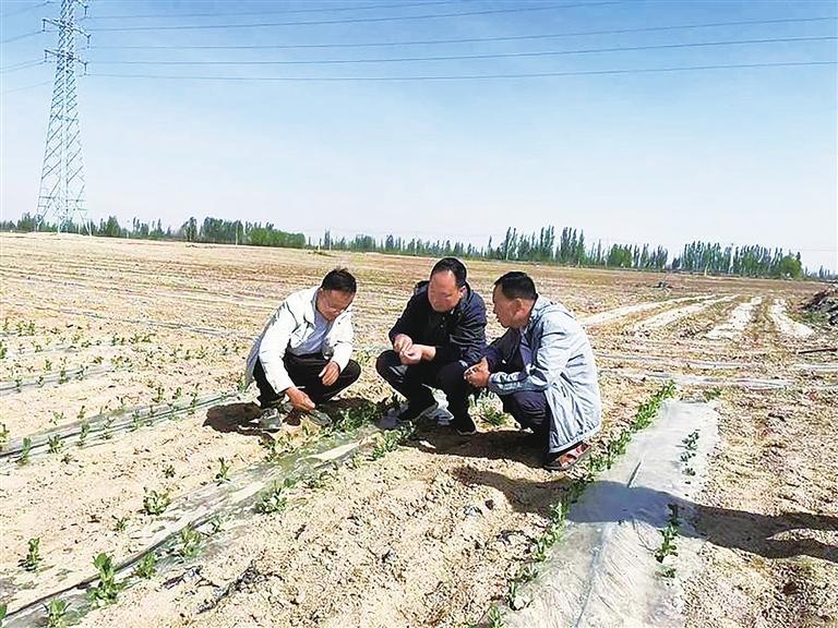 李永峰(中)為農(nóng)戶進(jìn)行技術(shù)指導(dǎo)。