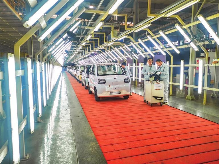 等待下線的“知豆彩虹”新能源汽車。