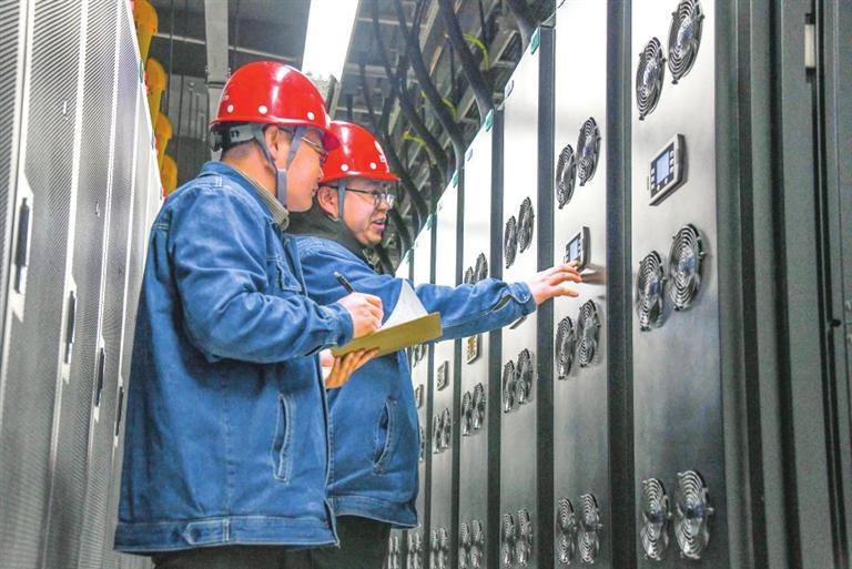 在位于新區的國網思極飛天(蘭州)云數科技有限公司,工作人員在大數據機房巡檢。