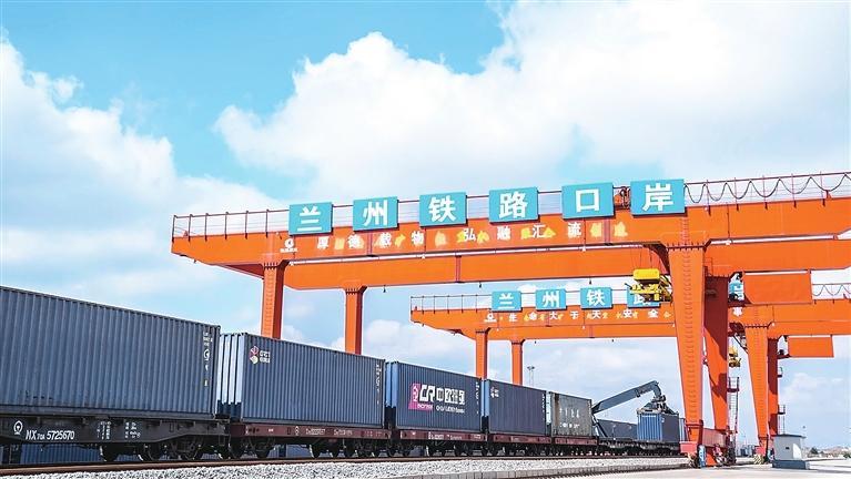 蘭州中川北站鐵路口岸一派繁忙,工人正在有序裝卸貨物。