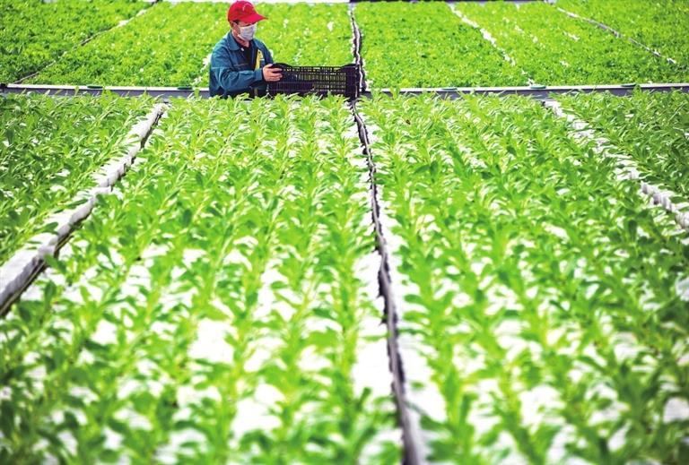 新區現代農業示范園內,產業工人通過先進技術培育農產品。