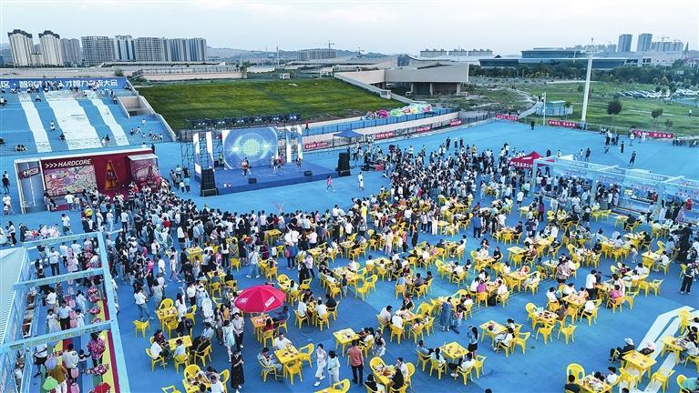 市民廣場上啤酒桌鱗次櫛比,座無虛席