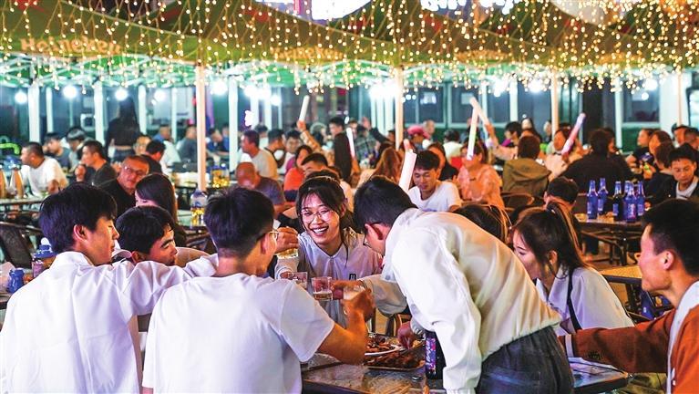 游客們圍坐在一起開懷暢飲。
