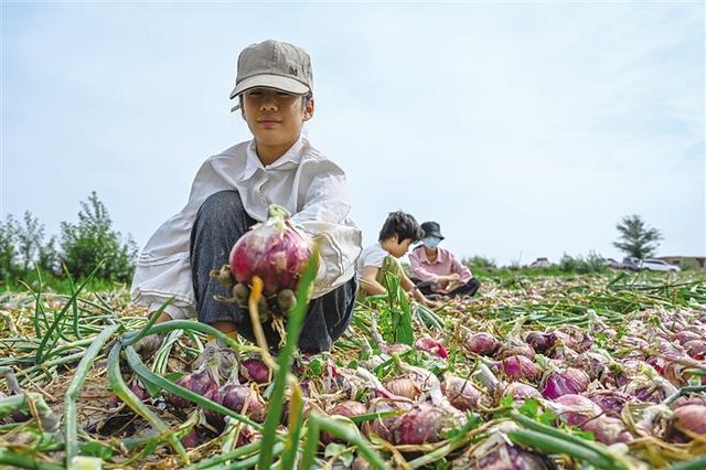 在新區(qū)中川園區(qū)洋蔥種植基地,空氣中彌漫著洋蔥清香,村民們忙著清理洋蔥的泥土、修剪根葉、分揀裝袋。洋蔥收獲期,大量的用工需求吸引了周?chē)迕竦姆e極參與,種植基地在解決采收難題的同時(shí),也讓村民增加了經(jīng)濟(jì)收入。“今年,我們種植了4500多畝洋蔥,得益于田間管理技術(shù)的大幅提升,洋蔥長(zhǎng)勢(shì)喜人。”甘肅美佳樂(lè)農(nóng)業(yè)有限公司總經(jīng)理薛正賢說(shuō),新區(qū)晝夜溫差大、光照充足,種出的洋蔥個(gè)頭大、質(zhì)量好、耐儲(chǔ)存,深受各地客商青睞。在洋蔥種植、采收等用工高峰期,基地每日可吸納100多名周邊村民務(wù)工,人均日收入200元至300元不等,洋蔥已成為群眾增收致富的“金疙瘩”。