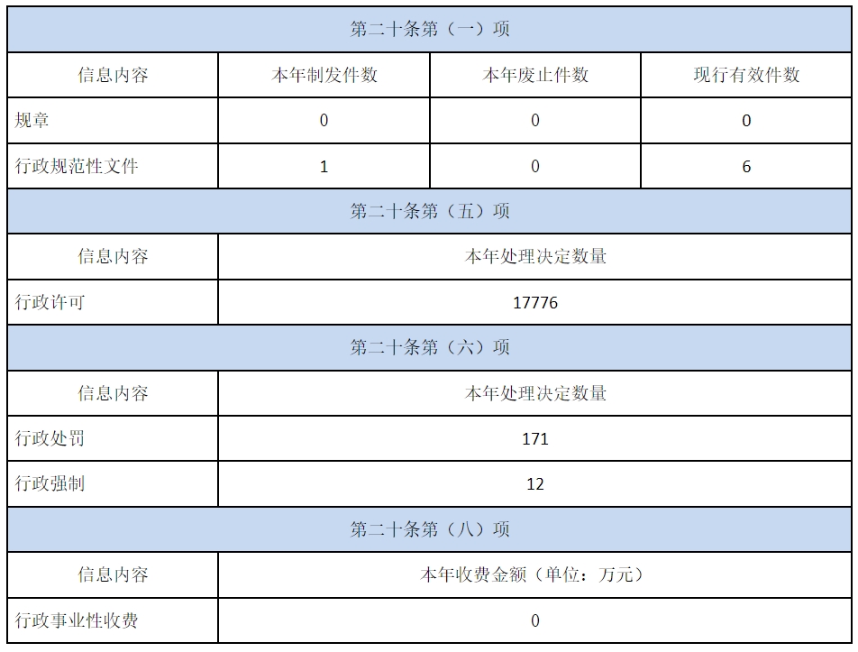 根據(jù)《中華人民共和國政府信息公開條例》《甘肅省政務(wù)公開工作實(shí)施方案》和《關(guān)于做好2024年政府信息公開工作年度報(bào)告編制發(fā)布工作的通知》要求,蘭州新區(qū)市場監(jiān)督管理局編制了2024年度政府信息公開年度報(bào)告,由總體情況、主動(dòng)公開政府信息情況、收到和處理政府信息公開申請(qǐng)情況、政府信息公開行政復(fù)議行政訴訟情況、存在的主要問題及改進(jìn)情況和其他需要報(bào)告的事項(xiàng)共六個(gè)部分組成。本報(bào)告所列數(shù)據(jù)統(tǒng)計(jì)期限自2024年1月1日起至2024年12月31日。