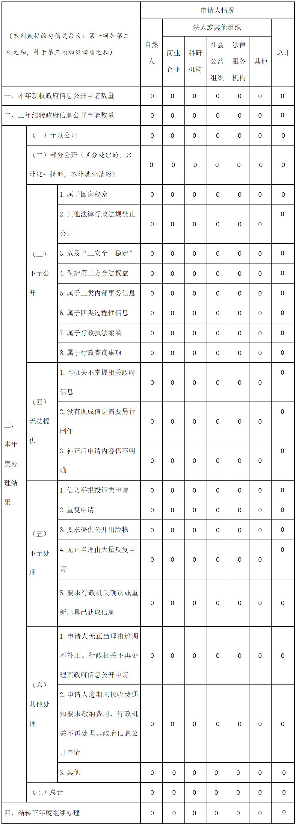 三、收到和處理政府信息公開申請情況