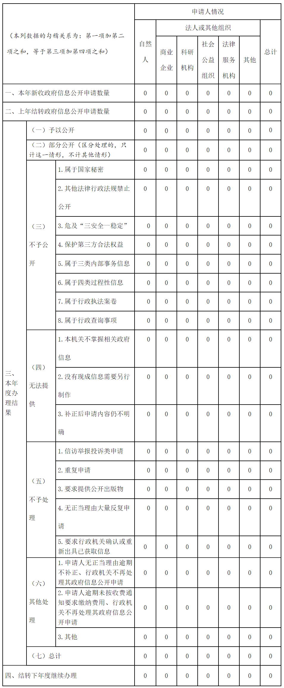 (二)依申請公開情況。全年未收到依申請公開事項(xiàng)。
