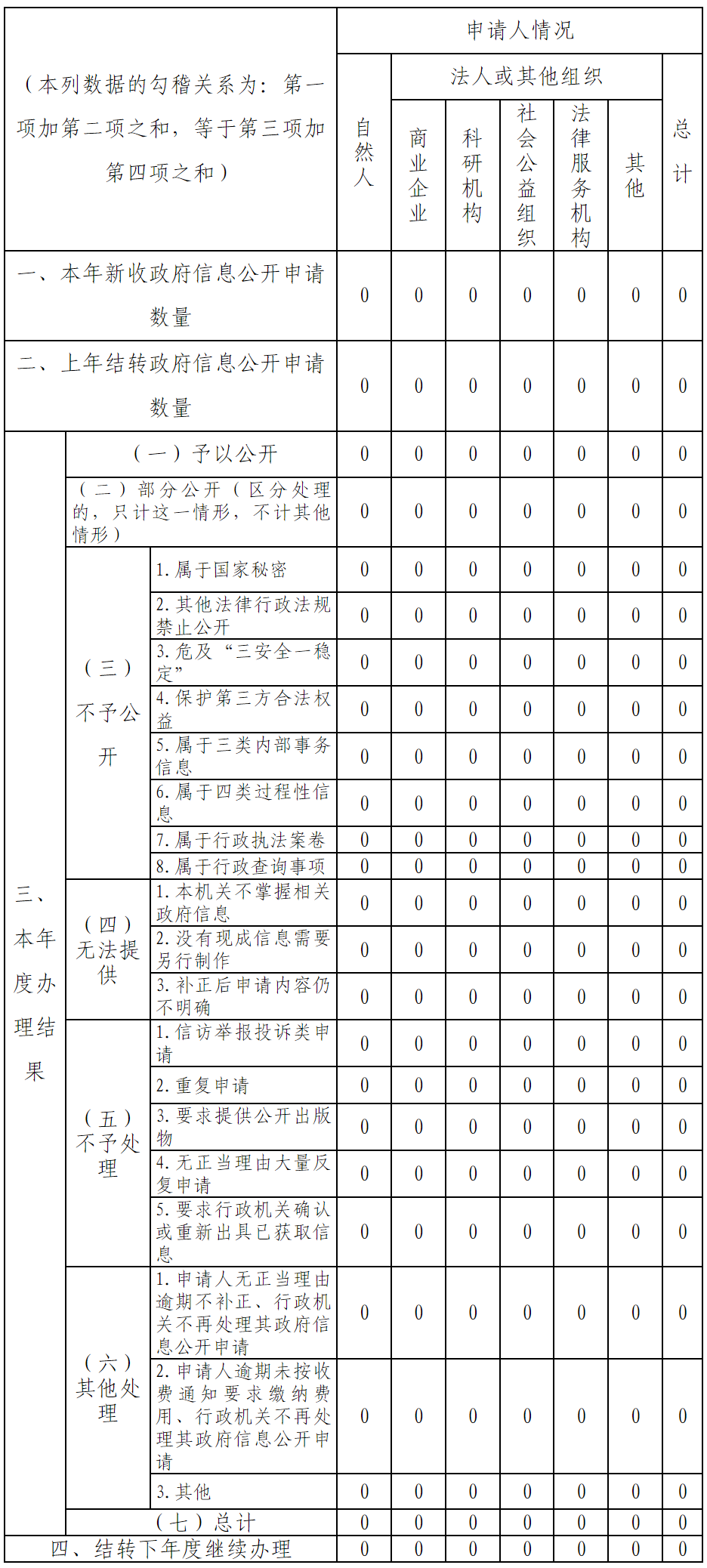 截至2024年12月31日,我局收到和處理政府信息公開申請0件。