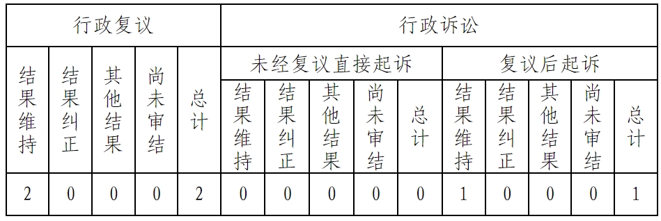 截至2024年12月31日,我局申請行政復(fù)議事項(xiàng)2項(xiàng)、提起行政訴訟事項(xiàng)1項(xiàng)。