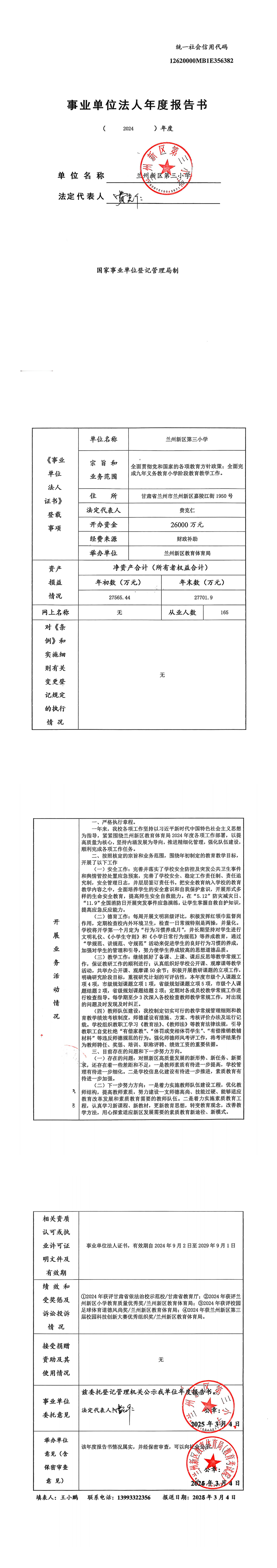 蘭州新區(qū)第三小學(xué)2024年事業(yè)單位法人年度報告書
