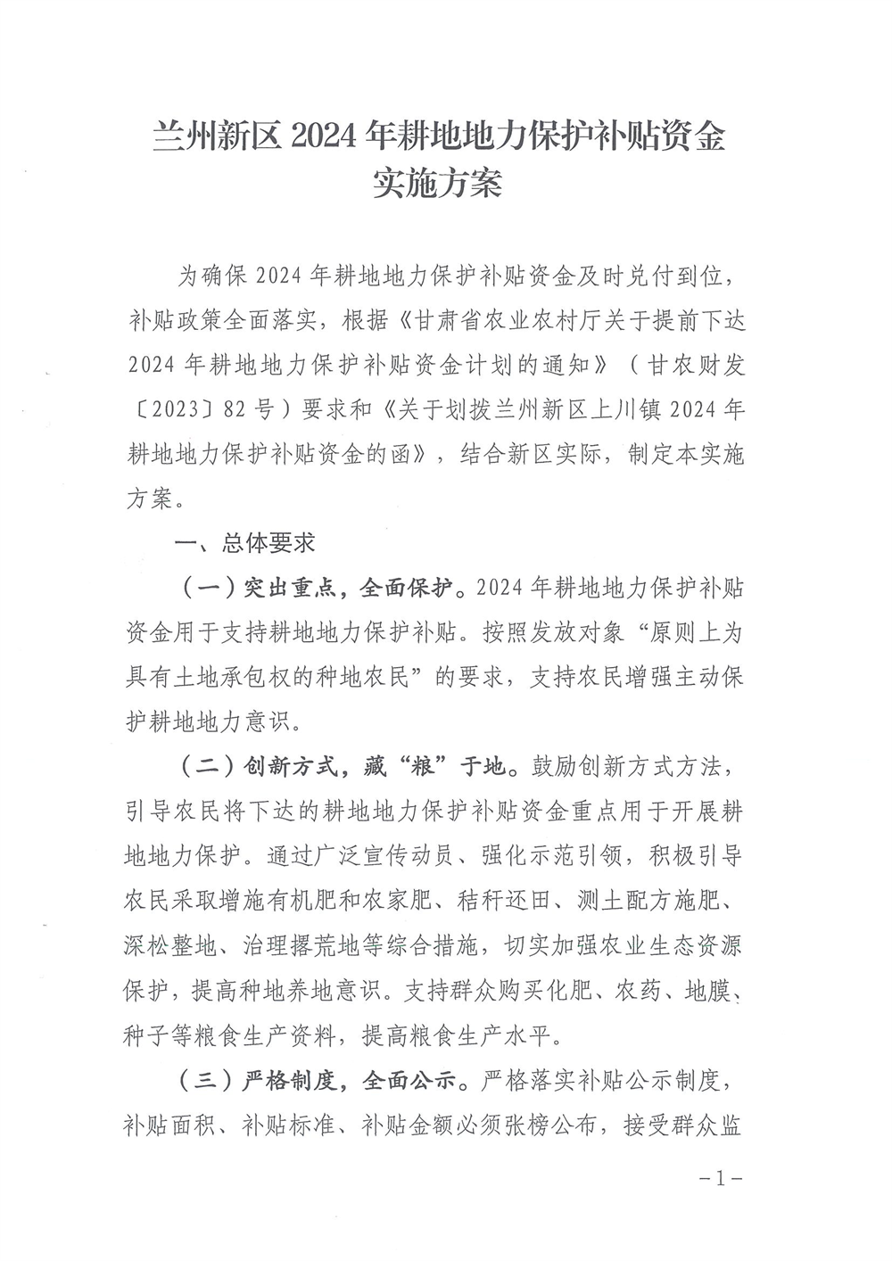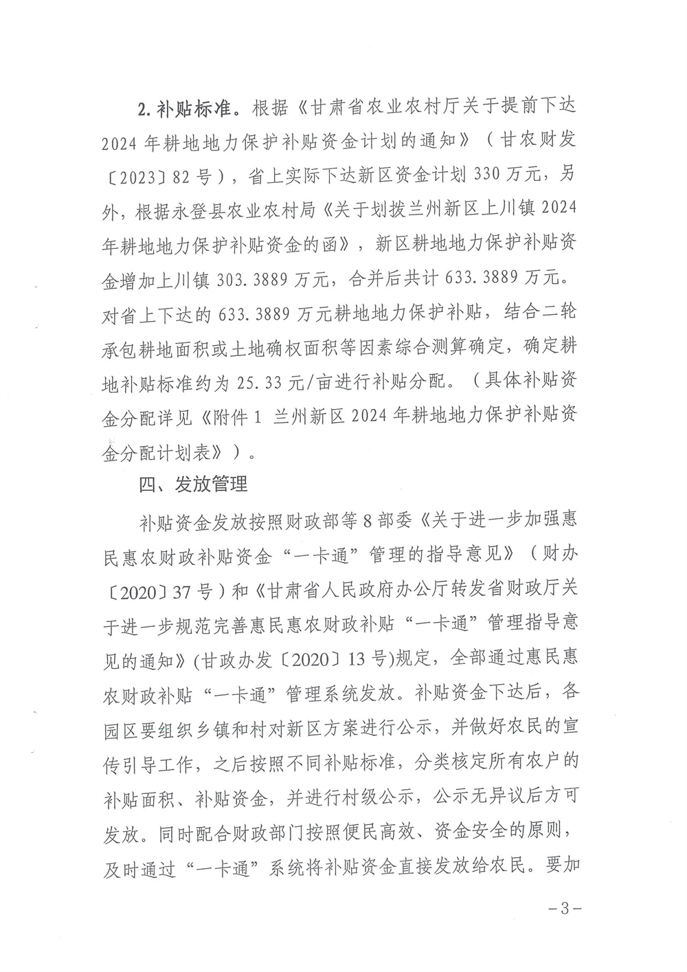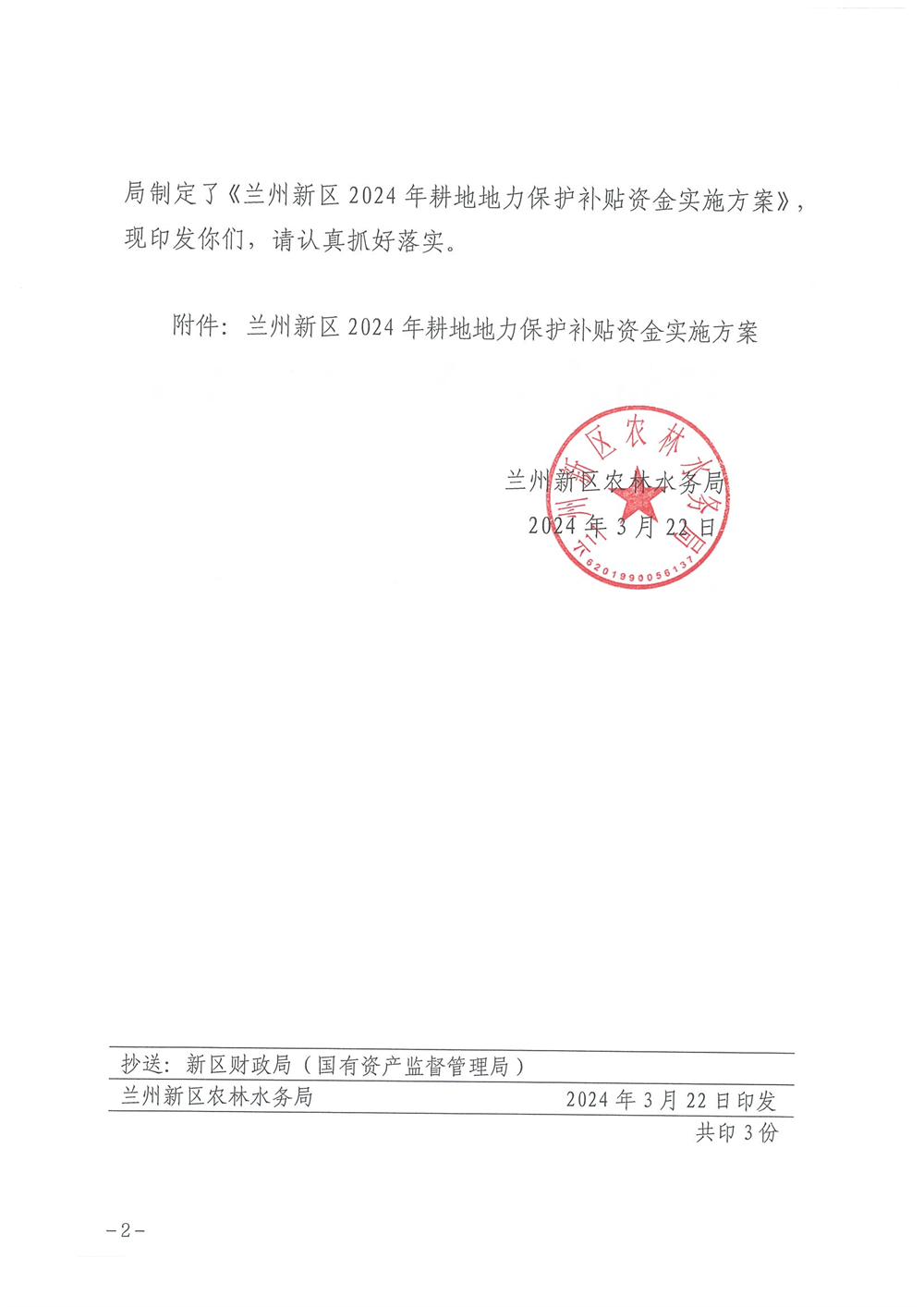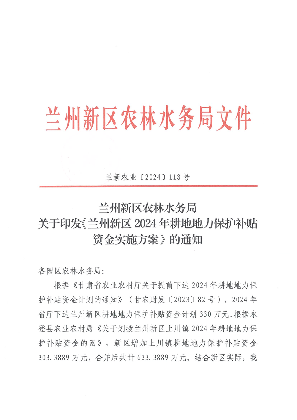 蘭州新區(qū)農林水務局關于印發(fā)《蘭州新區(qū) 2024年耕地地力保護補貼資金實施方案》的通知