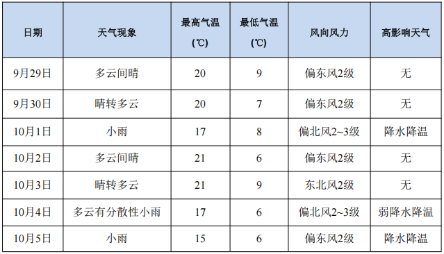 一、未來一周(9月29日-10月5日)天氣趨勢預報