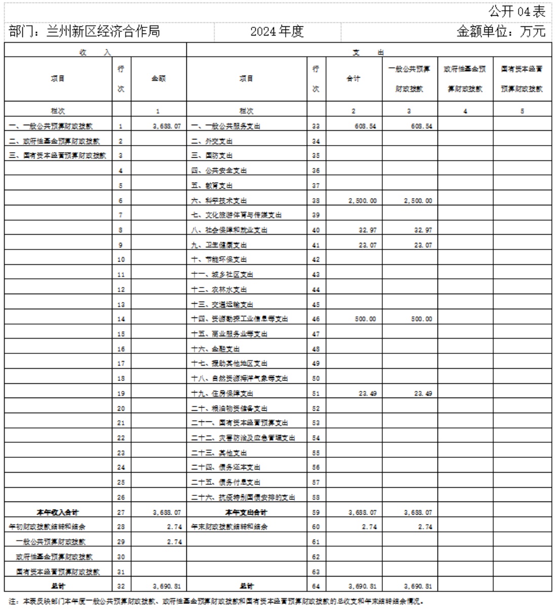 2024年度收、支總計均為3690.96萬元。與上年度相比,收、支總計各減少1397.97萬元,下降27.47%,主要原因是2024年由我局負責兌付的招商引資重點項目獎勵資金較上年減少,故收、支決算總計比2023年減少。