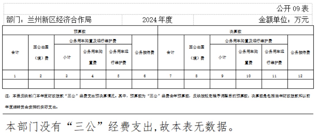 2024年度本部門因公出國(境)共計0.00個團組,0.00人;公務用車購置0.00輛,公務用車保有量為0.00輛;國內公務接待0.00批次0.00人,其中:外事接待0.00批次,0.00人;國(境)外公務接待0.00批次,0.00人。