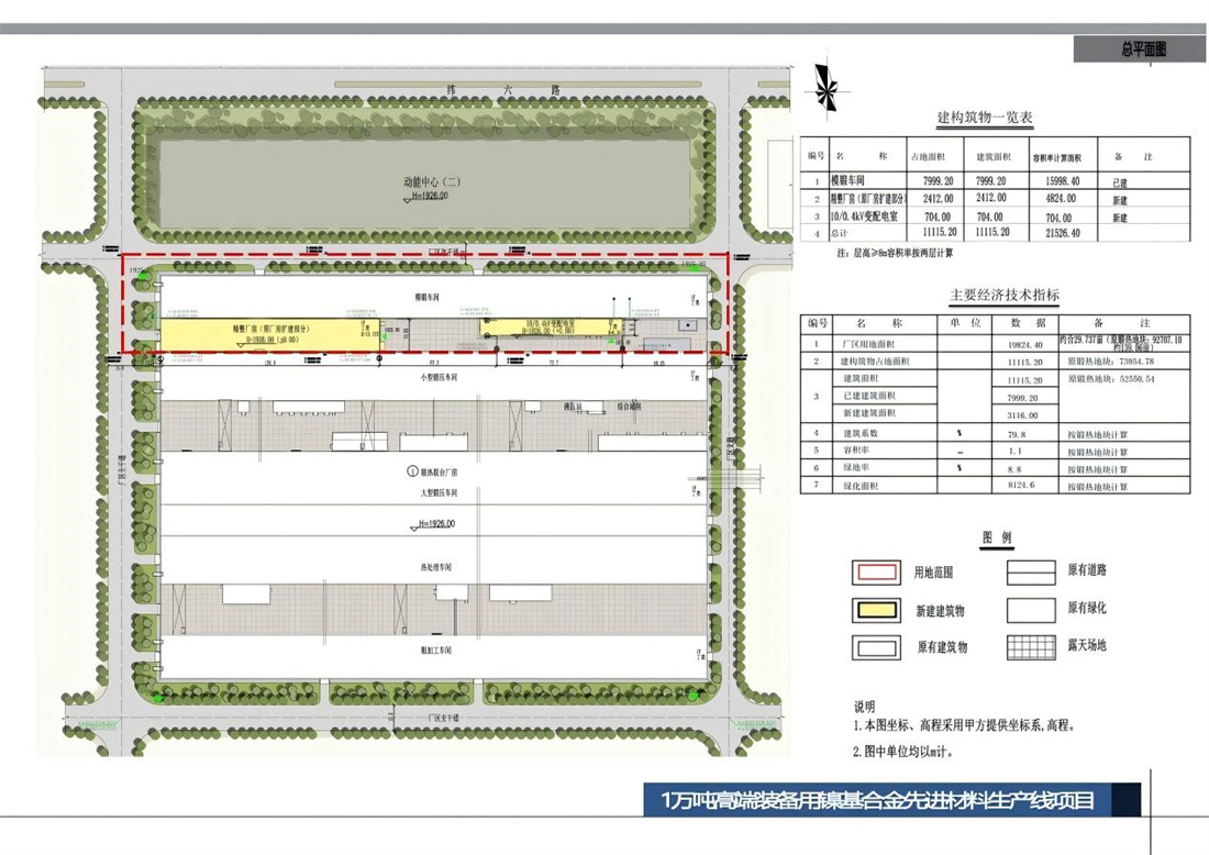 1萬噸高端裝備用鎳基合金先進材料生產線項目公示